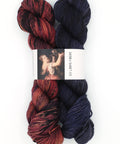 Dyed up on Ex Libris Fibers' yak/silk DK base, Brontë, this set pairs a visceral, heavily-speckled rust skein with a haunting midnight blue for your favorite brioche or high-contrast project (We recommend stitching up Brooklet by Makenzie Alvarez while you read!).
