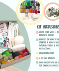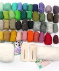 - COMPLETE WOOL FELTING KIT: White Felting Wool Core , 40 dyed colored wool, 4 Felting Needles, Mini Felting Mat, photo booklet and Card Insert with QR code for online resources.