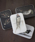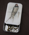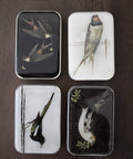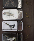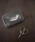 Our new limited-edition slider tins feature vintage prints of four different birds covered in hand-poured resin. This tin is the perfect compact size to stow in your purse or knitting bag but is also large enough to store all of their small knitting and sewing notions! Handmade in British Columbia.