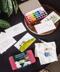 Paint your own watercolor Italian fields with these outlines and paints. This kit is compact and portable- everything packaged together in a tin painting box. Just add water to the included water brush and you can paint anywhere!