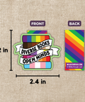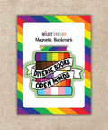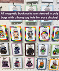 Looking for a fun new way to mark the progress you've made in your book? One of our most popular stickers is now available as a magnetic bookmark, reminding you that diverse books bring open minds! *Bookmark Details* - 2.4x2 inch bookmark - Full interior of the bookmark is magnetic - Heavyweight glossy cardstock with magnetic backing. *Packaging* - Packaged on a cardstock backer card with a hang tag hole, in a cello bag. - Pricing and UPC barcode printed on the back of packaging card.