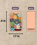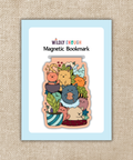 A group of happy, silly cats with yarn and plants! This jewel tone magnetic bookmark is perfect for every cat lover. *Bookmark Details* - 2.4x1.7 inch bookmark - Full interior of the bookmark is magnetic - Heavyweight glossy cardstock with magnetic backing. *Packaging* - Packaged on a cardstock backer card with a hang tag hole, in a cello bag. - Pricing and UPC barcode printed on the back of packaging card.