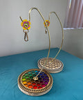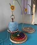 Elevate your fiber arts projects with The Minder Minder, the perfect companion to your Original Mini Minder for relaxing at home. Designed with both beauty and functionality in mind, this sturdy tabletop hanger keeps your yarn clean, tangle-free, and always within reach. Key Features: - Heavy, Sturdy Base: Ensures stability on any flat surface, making it a dependable option for long projects. - Handmade Leather Strap: Delicately crafted in the shape of a flower for a charming, artisanal touch. - Honeycomb Design: Choose between two stunning base designs—Rainbow for a vibrant look or Natural for a more earthy, understated style. The Minder Minder not only keeps your project space organized but also adds a stylish accent to your home setup. Whether you're knitting at the table or by the couch, this hanger is the ideal way to stay cozy and creative. Works best with the Original Mini Minder.
