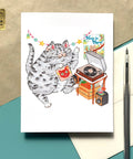 Paper Puffin Card Vinyl Vibes Dancing Cat