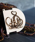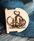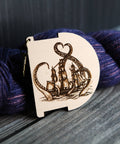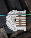 Kraken Spinners Control Tool. This WPI (Wraps per Inch) Ruler and Twist Angle Gauge combo tool is made from maple wood and is used to identify the gauge of a yarn. This legendary cryptid sea monster of the deep accompanies your yarn bag perfectly.