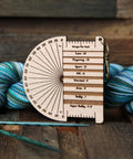 The wraps per inch (WPI) is a way to measure the thickness of a yarn. This tool is used by spinners, but is also helpful for knitters and crocheters to determine the weight of the yarn and what the approximate gauge will be. This guide also has lines on the back to measure your yarn against, including lace, fingering, sport, DK, worsted, bulky and super bulky.