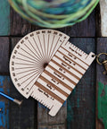 The twist angle gauge for yarn spinning tells the angle of twist from 0-90 in increments of 10 degrees and designates S or Z twist. To measure twist angle, lay your yarn across the wood and match the twist to the closest twist angle line. Great for spinners to check to make sure they are keeping the ply twist consistent.