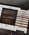 This Forest Mushroom and Snail Almost Everything Ruler is 8.5 inches long by 3" high. The design features a cute snail on top of a mushroom in the forest and also some morel mushrooms. To use the swatch part of the tool, hold it up against your stitch work and count how many stitches fit inside the cut-out area. By placing the tool over your work, you can see how many stitches you have per inch and per centimeter. The top slot measurements are in inches and side slot measurements are in centimeters. The bottom is used for stitch gauge and side is used for row gauge. This ruler is great for all fiber artists. Wraps per inch (WPI) is a way to measure the thickness of a yarn. This tool is used by spinners, but is also helpful for knitters and crocheters to determine the weight of the yarn and what the approximate gauge will be. This guide also has lines on the back to measure your yarn against, including lace, fingering, sport, DK, worsted, bulky and super bulky.
