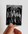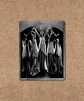 Vintage collage sticker. Women in dresses reaching up to a crescent moon. Sticker Title: Moonlit Dimensions: 2.75" x 3.5" Great size that works well on laptops, water bottles, phones, etc. Matte finish and laminated for scratch and weather protection.