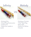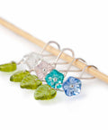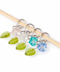 Set of 8 beautiful pastel glass flowers 2 of each color hung on our signature melody ring loops - clear, pink, teal, blue Choose removable Melody style or closed loop Infinity style CUSTOM MADE JUST FOR YOU! We know that not all knitters are alike, and every project is unique. We want you to have the PERFECT set of stitch markers just for you and your projects. Not some one size fits all (but really fit's none) solution.
