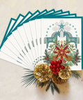 This is a print of an original design in the style of the traditional German art form called Scherenschnitte, or “scissor-cuts.” DETAILS: • design is colorfast printed • printed on 100% recycled Speckletone paper • paper is natural off-white thick card stock with darker fibers woven through • 4.25 x 5.5 inches • 100% recycled envelope included • inside is blank leaving room for a personal message • 100% biodegradable Set of 10 cards with matching envelopes packaged in an open-window kraft box. Not for individual resale.