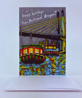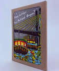 Christmas lights reflect off the willamette river. This is a time honored tradition for the locals here in Portland. Tilikum crossing bridge is lit up and boats covered in lights cruise up and down the waterfront at night. It's super cool. Box set 6 cards and envelopes in custom chipboard box. Plastic free packaging. Letterpressed in multiple overlapping colors. Blank inside for your own message. Includes six 6 1/4" x 4 1/4" cards with six matching standard A6 square flap envelopes.