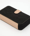 The set of 7 sizes of Single-Ended Interchangeable Crochet Hooks, a wooden handle in grey onyx color and accessories are packed in a premium faux suede black fabric case.