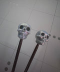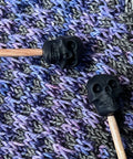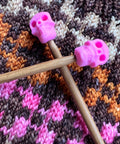Who needs skulls n' crossbones when you can have skulls n' knitting needles?! Sold as a pair, these knit needle stoppers fit best on sizes US2 (2 3/4mm) up to US13 (9mm). Made with 100% FDA approved food grade silicone. They are heat resistant and dishwasher safe.