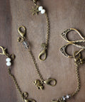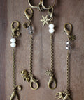 Use these unique handcrafted chains to attach scissors or other accessories to a knitting bag or purse so they are always within reach! These sparkling chains are the perfect accessory for winter crafting! Handmade with faceted crystal glass beads and antique bronze charms, your customers will love the winter forest themed snowflakes, mountains, deer and bear.
