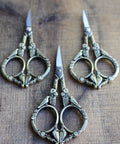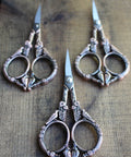 Embroidery scissors with high quality stainless steel blades and beautifully engraved bird handles. Perfect for snipping yarn tails and threads, these little beauties would make an elegant addition to any knitting bag or sewing basket.