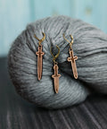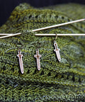 Medieval Swords Removable Knitting Progress Keepers & Crochet Stitch Markers. Set Of 3 Stitch Markers. These vintage swords and daggers progress keepers are made from either walnut or maple wood and are lightweight and easy to use. These removable stitch markers come in a set of three. The bronze leverback open clasps make it easy to place anywhere on your project to mark your knitting or crochet rows, increase or decrease points and to place when needing to measure a certain length from the beginning of a point.