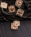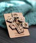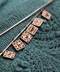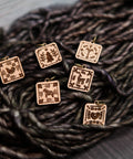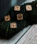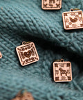 These Scandinavian stitch markers are made from maple wood and are lightweight and easy to use. The Nordic designs features block Scandiwork patterns with the dala horse, deer, tree, fox, heart and bird. The ring hooks hang easily up to US 7 needles.