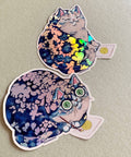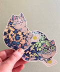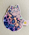 + permanent adhesive glossy vinyl sticker with solid peel backing, holographic finish