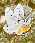 Moth Cats as stickers! This listing is for one sticker of “Sunny Smile”, inspired by the Yellow Ermine moth.