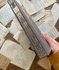 •Dark grey linen hardcover with gold foil stamping on cover and spine