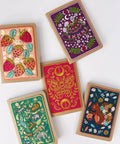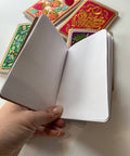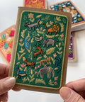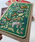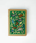 Animals from forests and beyond frolic together with leaves and flowers embroidered pocket notebook. Embroidered appliqué on kraft paper 3.5X5 inch 32 page blank sheet journal. Perfect for tucking in your bag or pocket. Blank high quality paper allows you to write or sketch. Rikrack logo stamped on back.